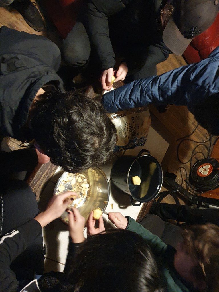 Na een hele gezellige middag waarin de jongsten lekker geknutseld hebben en de wilde vaart onderhoud aan de boten heeft gedaan, gaan we vandaag starten met een reeks lessen voor het Klein Vaarbewijs I. Maar voordat we na een frisse buitendag, ons opnieuw moeten concentreren, moet er natuurlijk gegeten worden. Op het menu staat stamppot andijvie, dus lekker veel aardappelen schillen! Een heel nieuwe ervaring voor sommigen :-).