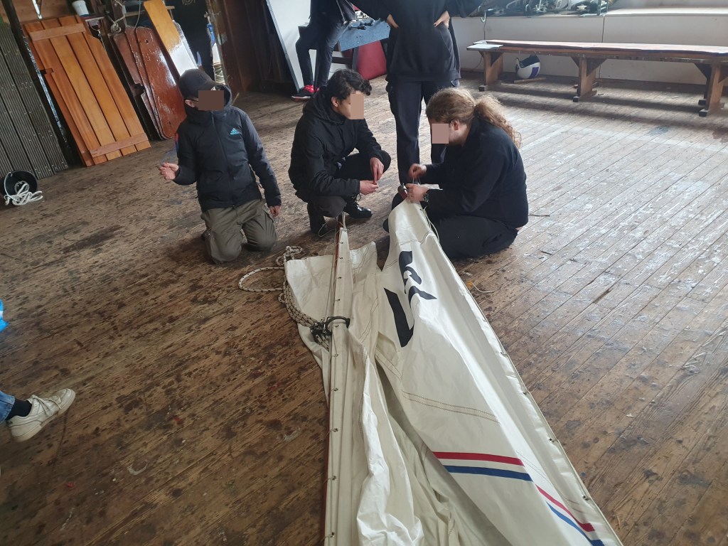 Vandaag hebben we de Stealin naar binnen gebracht om geschuurd en geschilderd te worden. Naast het staal moet natuurlijk ook het houtwerk gedaan worden. Voordat dat gedaan kan worden, moet het zeil los gehaald worden van de gaffel en de giek. Mooi moment om de oudste kinderen te laten zien hoe je dat doet. Naast het naar binnen brengen en het loshalen van het zeil is er lekker geknutseld, vuurtje gestookt en spelletjes gespeeld. Het was weer een lekkere actieve middag.