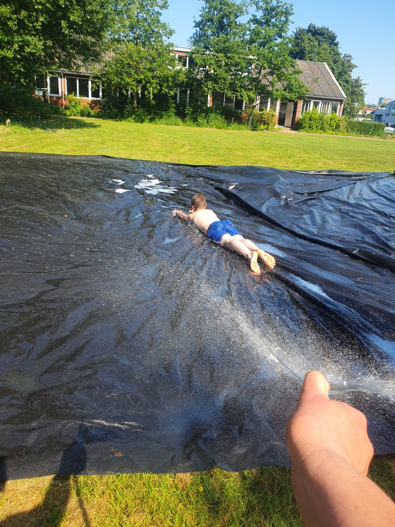 Het was erg warm vandaag, daarom alle reden om iedereen nat te laten worden. Als eerste met een omsla-oefening, daarna lekker zwemmen en als afsluiter een zeepglijbaan. Naast een leerzame middag met het omslaan, ook een heerlijke middag!