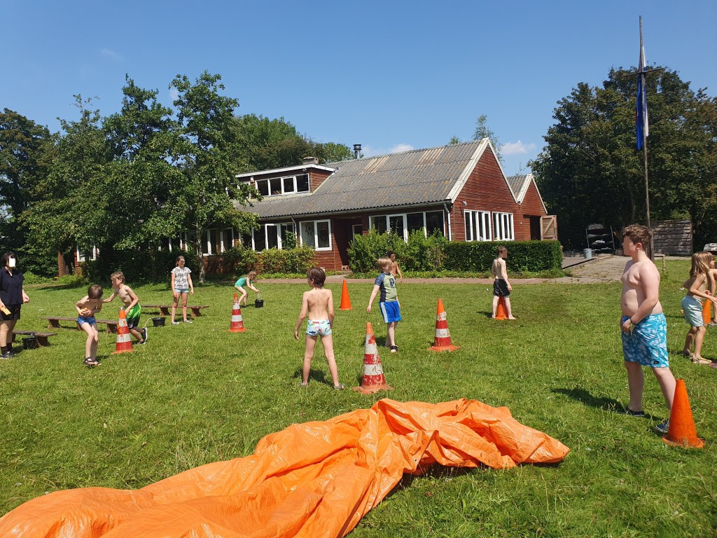 Pffff het was weer warm vandaag! Daarom hebben we ons vermaakt met allerlei waterspelletjes zoals een waterestafette waarbij water in bekertjes over een parcours naar de overkant gebracht moest worden, een waterwipwap en een sponsen-estafette waarbij je lekker nat kon worden. Daarna zijn we verder afgekoeld in het water. Ondertussen werd ook een zomerkamp opgebouwd, deze week zijn de Shawano’s uit Lisse bij ons te gast. Gezellige drukte!