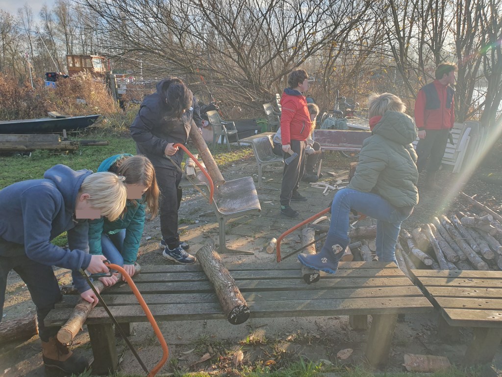 Wat een heerlijke vrieskou vandaag! Een goed moment om eerst warm te worden door hout te zagen en te kloven, daarna van een lekker vuurtje waarboven we ‘kindergluhwein’ gemaakt hebben. Lekker om mee door te warmen op deze dag.