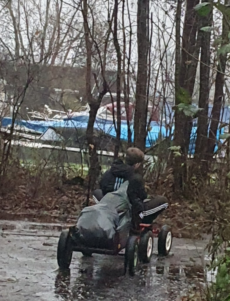 Het was een gure middag buiten, daarom hebben we vooral binnen activiteiten gedaan. We hebben gewerkt aan het houtwerk van de Merlet, en alle vlonders zijn gecontroleerd en waar nodig gerepareerd. Daarna hebben we met elkaar spelletjes gespeeld of een wedstrijdje op de flipperkast gespeeld. En met de elektrische skelter is tegenwoordig vuilnis wegbrengen ook een geliefde activiteit ;-).