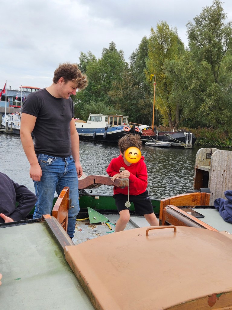 Hoe tof is het om zo’n groot schip als de Lis te sturen? Je kunt niet jong genoeg beginnen met het ervaren van wat dit schip doet. Dus, onder toeziend oog van de leiding mochten de jongste kinderen vandaag met de Lis het water op. Ondertussen werden de vletten opgetuigd en zeilden die er achteraan. Aan de andere kant van het meer aangekomen is er even pauze gehouden met limonade en koekjes. Daarna is iedereen weer terug gevaren en was de clubmiddag alweer voorbij.