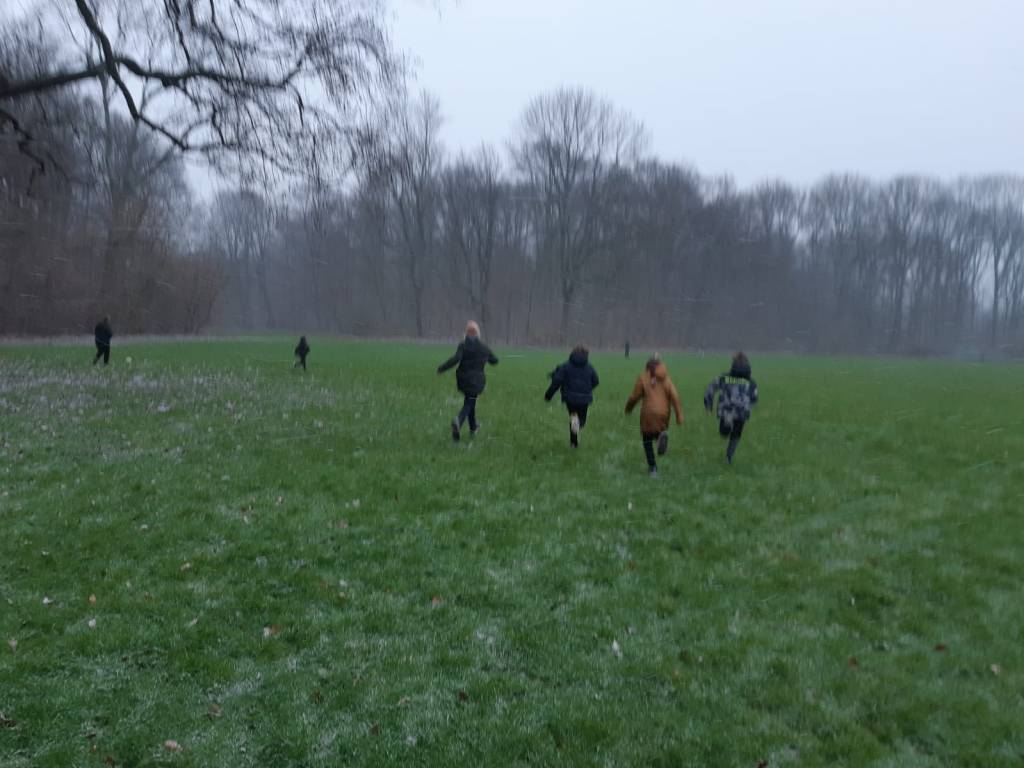 Omdat we graag alle leden weer een keer wilden zien hebben we vandaag afgesproken in het Amsterdamse Bos. De junioren hebben daar, onder beperkte leiding, een aantal renspellen gedaan. Op deze manier konden we toch iets met elkaar doen, binnen de geldende regels. Het was fris, en tijdens het spelen begon het ook nog te sneeuwen! We hebben Levend Stratego gespeeld en een aantal balspellen gedaan. Het was leuk om veel kinderen weer even te zien, wellicht volgende week weer. Helaas bleef het bij het clubhuis erg stil, maar wel mooi wit ;-).