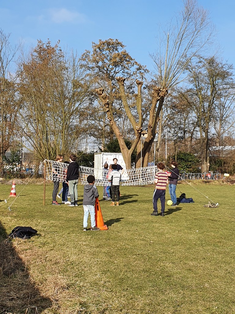 Vandaag mocht er voor het eerst sinds de kerstvakantie weer een echte clubmiddag zijn. Wel is het advies de activiteiten zoveel mogelijk buiten te laten plaatsvinden. Daarom hebben we gistermiddag een heleboel bal-, tik- en renspelletjes gedaan buiten. Een van de spelletjes was ‘ballenzooi’, elk team moet proberen door het gooien van ballen een kleine bal in het vak van de tegenstander te krijgen. Door alle activiteit bleven we lekker warm, want de wind was behoorlijk koud. Na bijna 2 uur buiten hebben we onszelf opgewarmd met warme chocolademelk. Volgende week een bijzondere activiteit: zeilen beschilderen in samenwerking met de stichting Sail a Future! En wellicht kunnen we dan ook nog met de sneeuw spelen.