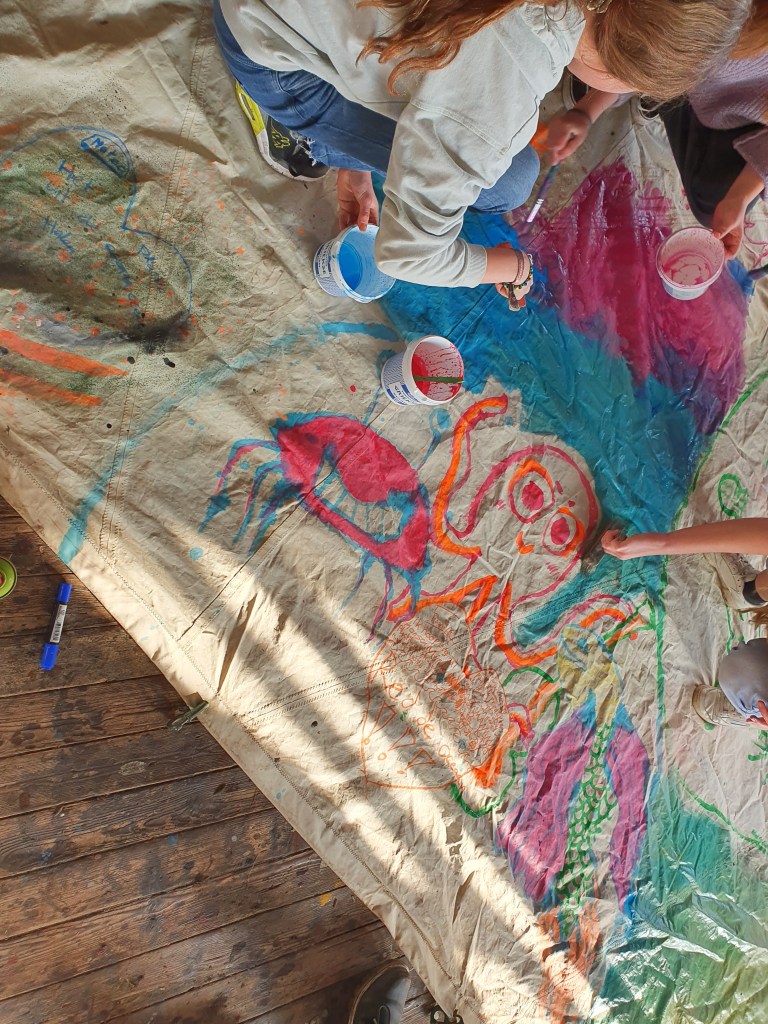 Vandaag hadden we gasten van Sail a Future . Deze organisatie laat kinderen schilderen en schrijven over de toekomst van onze planeet en de oceanen op afgedankte zeilen. Hiervan worden later tassen gemaakt. De berichten van de kinderen worden dan teruggelezen op de boodschappentassen. Een deel van de kinderen heeft eerst uitleg gekregen en is toen aan de slag gegaan.