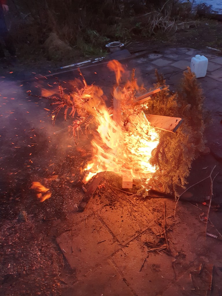 Vandaag was de eerste clubmiddag van 2020 en we zijn meteen goed van start gegaan! Voordat de junioren kwamen hebben we de stroomaansluiting buiten gereviseerd. Nu hebben we beschikking over meerdere stopcontacten, heel fijn voor het leeg hozen van de boten en zo. Met de kinderen hebben we aan het begin van de middag een aantal kerstbomen opgehaald die bij de kantoren in de buurt lagen, daarna hebben we even wat werk verzet aan de vletten. Ze zijn nu echt helemaal schoon zodat er volgende week machinaal geschuurd kan gaan worden. Daarna was het natuurlijk de hoogste tijd om te controleren of de kerstbomen konden branden. We hebben ze niet allemaal verstookt, daarvoor stond er teveel wind het land op. Volgende week kunnen we dus nog een keer genieten van het geknetter van de naalden.