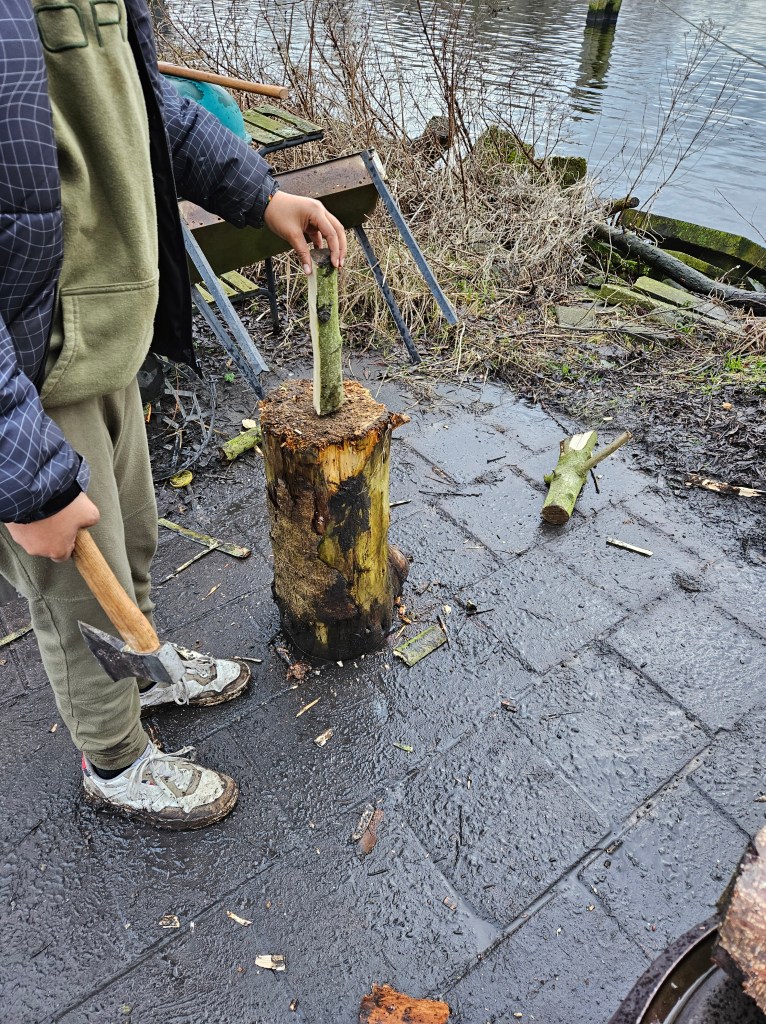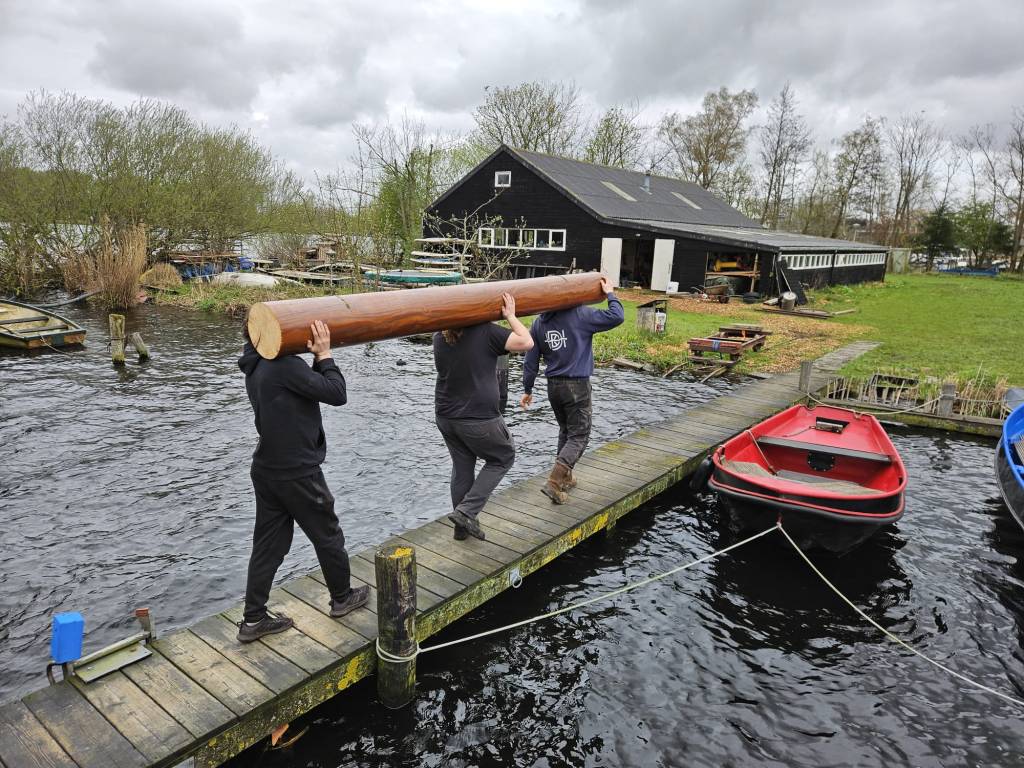 Vandaag was een droevig moment, we hebben de mast van de Lis verwijderd. Deze was afgekeurd, dus er mocht niet meer mee gezeild worden. We hebben de mast aan boord in stukken gezaagd en vervolgens naar de loods gebracht. Bij het doorzagen zagen we dat dit een goede beslissing is. De goede delen hopen we opnieuw te kunnen gebruiken als planken of zo. Het was een pittige klus, maar dankzij wat sterke handen, zijn we een eind gekomen.