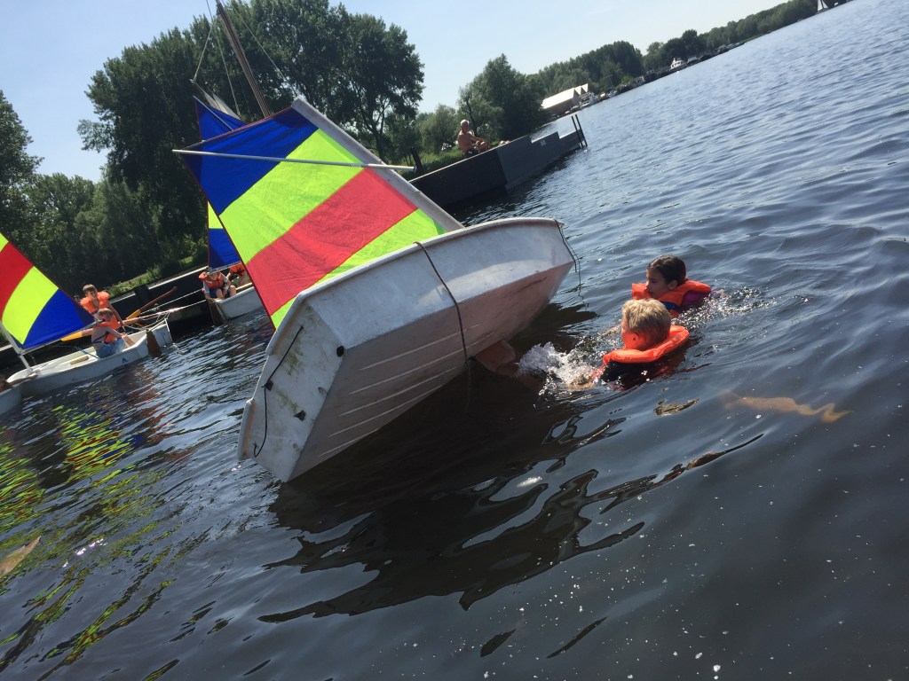 In de zomer wordt er gezeild, maar als het weer het toe laat ook heerlijk gezwommen. We zwemmen dan vaak vanaf de Lis, onze tjalk die ook functioneert als wachtschip bij kampjes.